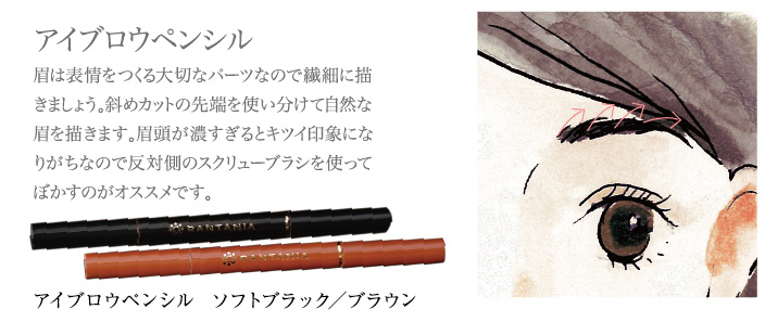 眉毛是表情里重要的一部分,需要我们细心的描眉。用斜切的笔尖可以画出自然眉。眉头过浓的话,会给人产生很强硬的印象,请用眉笔另一头的笔刷,刷去多余眉色。